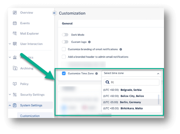 - To do that, go to System Settings > Customization > General, check the Customize Time Zone box and select the desired time zone.