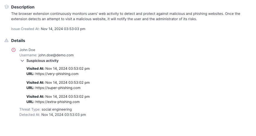 - We now display suspicious URLs visited by end-users as part of the detection details. This provides a broader perspective on web activity, helping to identify and address potential threats.