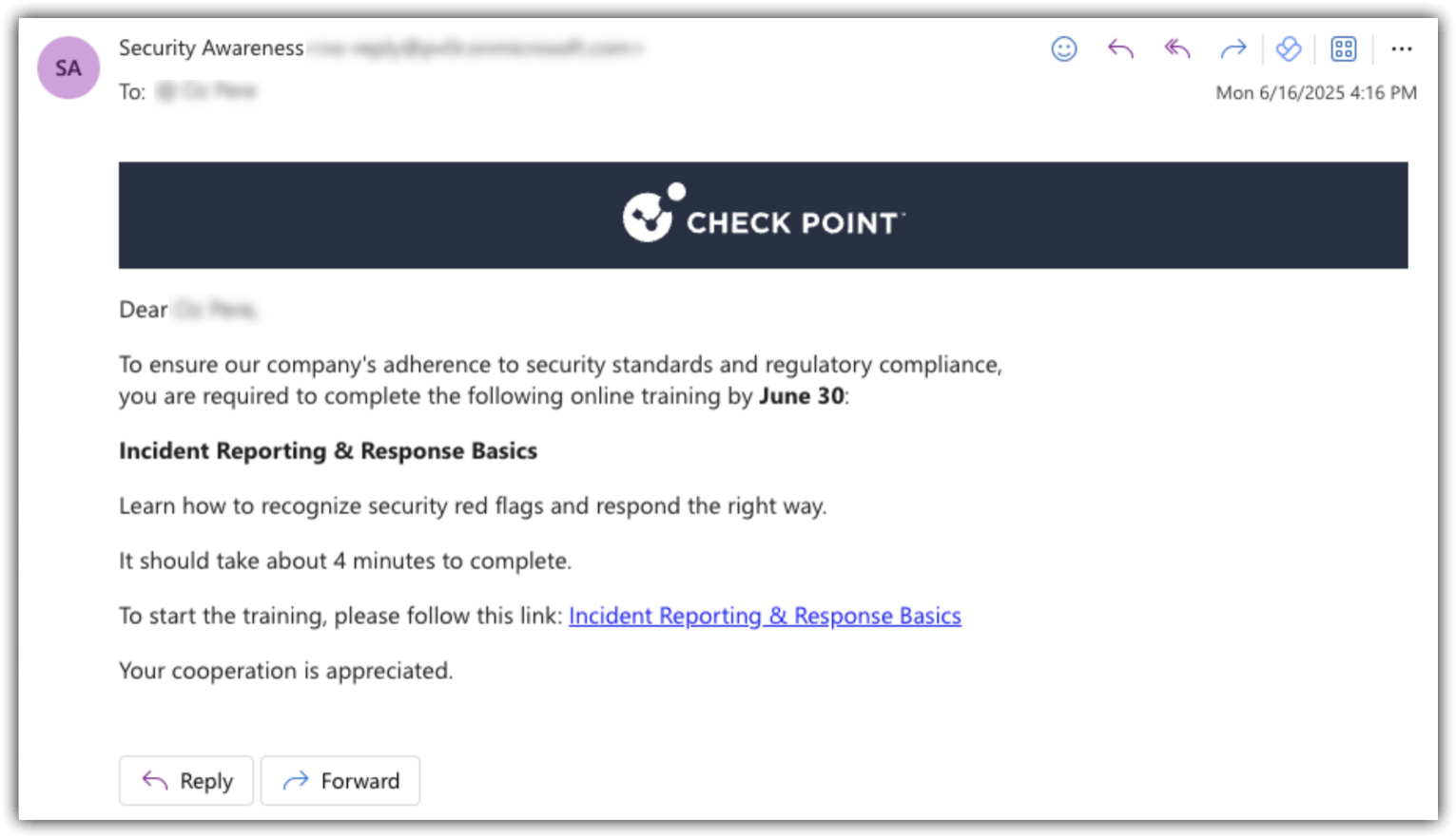 As part of Avanan's Security Awareness Training offering, end users receive email notifications from time to time - for example, reminders to complete assigned training modules. These messages are crucial to ensuring consistent engagement, but they can sometimes be overlooked or mistaken for phishing attempts.