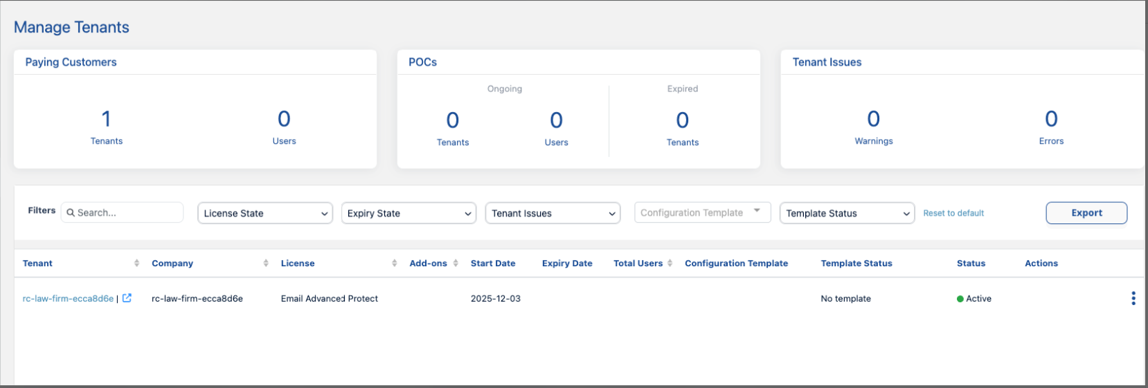Locate the relevant tenant (you will be able to proceed only once the tenant record appears as 'Active')