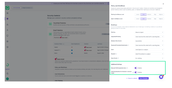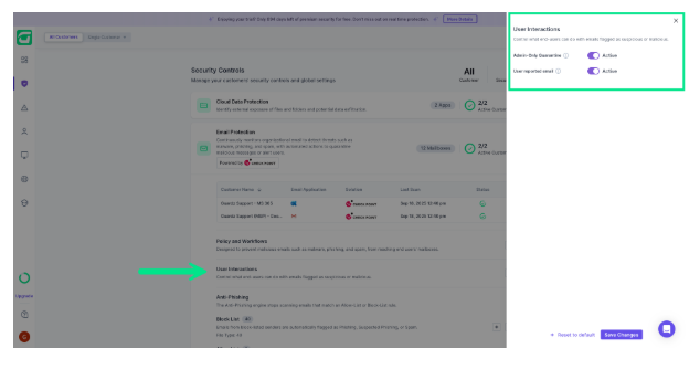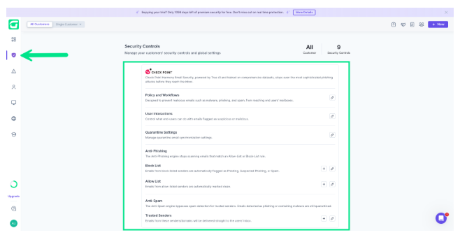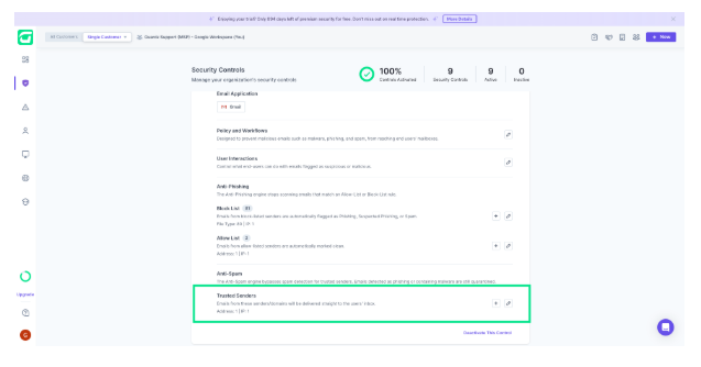 To do so, select the ‘All Customers’ view, click on the ‘Security Controls’ tab and open the ‘Email Protection’ section.