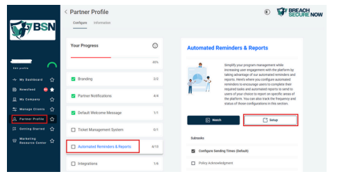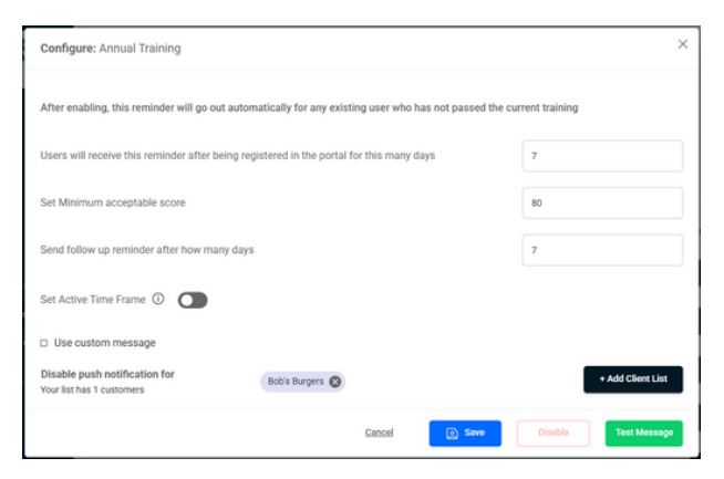3) Configure your settings: set a minimum score you require, how long the employee needs to be registered in the portal for, and how many days for the subsequent reminders.