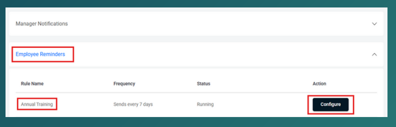 Stay ahead of annual training requirements with automated reminders. These help reinforce training completion without manual follow-ups, ensuring employees stay on track while reducing admin effort. Reminders run automatically and can be tailored to fit different client needs.